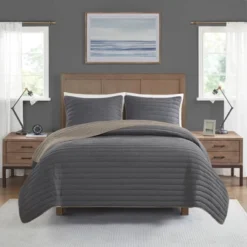 Madison Park 3pc King/California King Dakota Ruched Fur Down Alternative Comforter Set Black