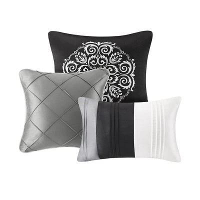 The Burnett Collection adds a chic look to your space. This comforter set shows off several layers of ivory, plum and lavendar polyoni pieced together for a unique striped look. Three decorative pillows use the same top of bed faric manipulation along with embroidery giving this bed the perfect finishing details.