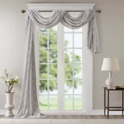 Clarissa Diamond Sheer Embroidered Window Scarf