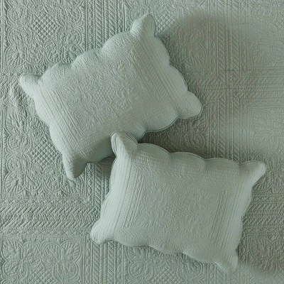 - • Cottage/country style quilted reversible coverlet set in scallop edge