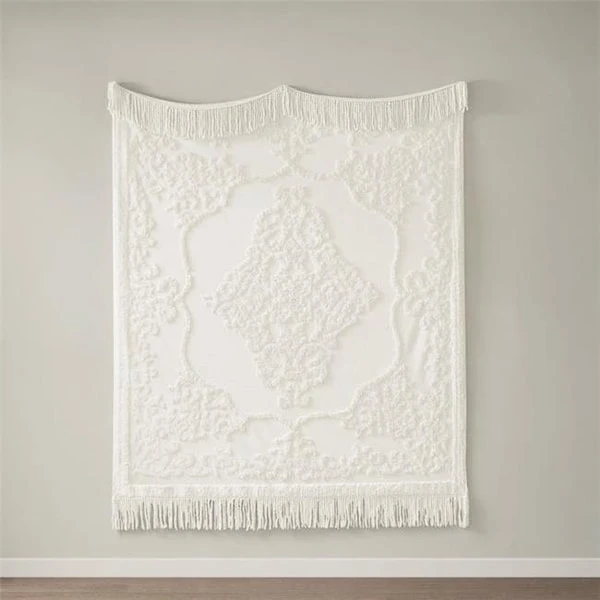 The Madison Park Chloe Cotton Tufted Throw provides a luxurious addition to your home decor. This ivory throw flaunts an elegant tufted chenille design with a 4-inch fringe on each end, for a beautiful bohemian look. The ultra-soft 100% cotton construction creates a light natural feel thats perfect for all seasons. Machine washable, this cotton tufted throw is great for layering across your bed or for simply bundling up in to stay warm and cozy.