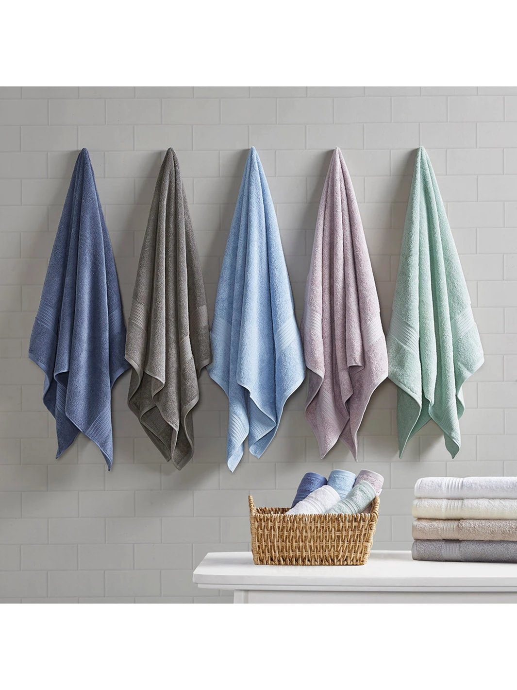 The Madison Park Organic 6 Piece Cotton Towel Set brings an all-natural, fresh touch to your Bath décor. These 650gsm towels feature long staple GOTS certified organic yarns that are exceptionally soft and absorbent, while the low twist construction provides more air and space between fibers to dry faster for maximum use and comfort throughout the day. Machine washable for easy care, each towel is also OEKO-TEX certified, meaning it does not contain any harmful substances or chemicals, ensuring quality comfort and wellness. Set includes: 2 oversized 30×54″ bath towels, 2 standard 18×30″ hand towels, and 2 standard 13×13″ wash towels.
