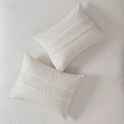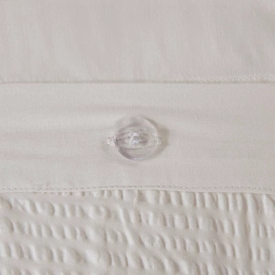 Restyle your bedroom with shabby chic elegance of the Rosette 3 Piece Cotton Seersucker Duvet Cover Set. The seersucker duvet cover is made from 100% cotton and features decorative tassel trims for a globally inspired look. Two matching shams mirror the design of the duvet cover, completing the cotton seersucker bedding set. Machine washable for easy care, this cotton duvet cover set brings a globally inspired style with a soft allure to your bedroom decor. Button closures help secure a comforter insert within the duvet cover and four inside ties in the corners help prevent it from shifting (insert is NOT included).