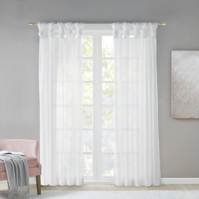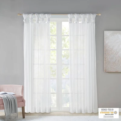 Soften your space with the Persis Twisted Tab Voile Sheer Window Pair. This soft panel pair provides a simple and airy update to your decor, with its lightweight voile sheer fabric and a weighted hem for providing easy draping and movement. The DIY twist tab top creates beautiful and delicate folds for a stylish decorator’s touch. This window panel is also OEKO-TEX certified, meaning it does not contain any harmful substances or chemicals, ensuring quality comfort and wellness. Machine washable and easy to hang, this window panel pair is perfect on its own for a soft filter or layer with others for a dramatic effect. Fits up to a 1.25″ diameter rod.